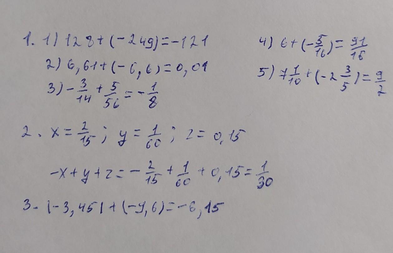 -2/15 + 1/60 +0,15 = -40/300 + 5/300 + 45/300 = 10/300 = 1/30