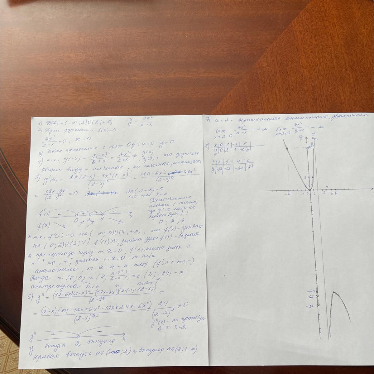 3) С помощью y" исследовать на выпуклость, вогнутость и точки перегиба.
