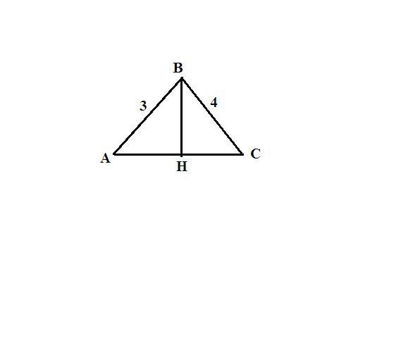 ВН/ВС=АВ/АС ⇒ ВН=(АВ*ВС)/АС=3*4/5=2,4 ед;
