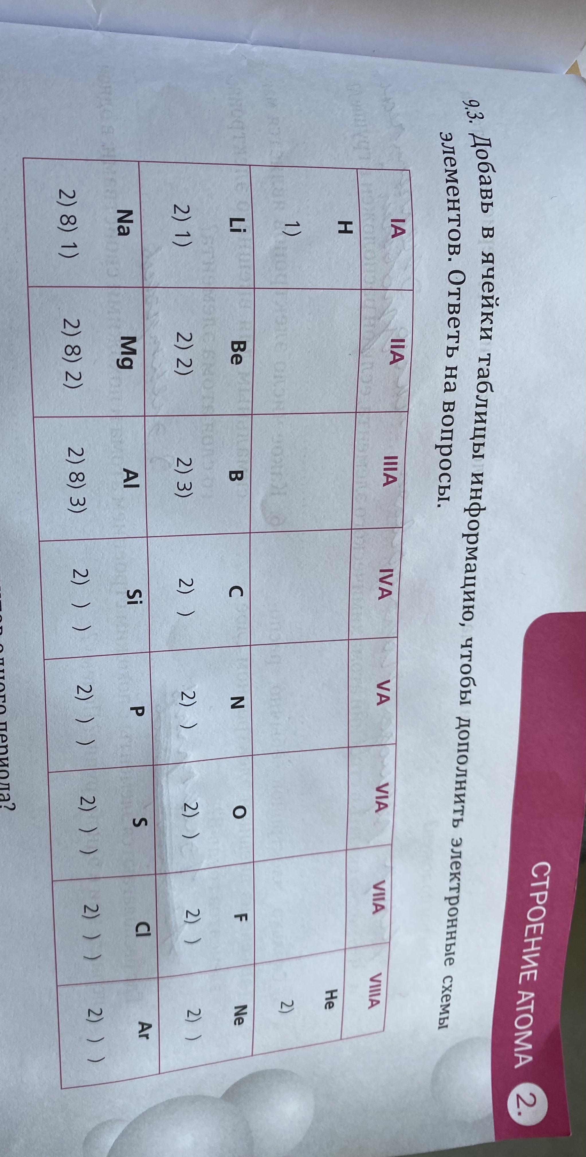 порядковый номер равен числу электроннов. по нему и составляем схему. например, азот порядковый номер 7.