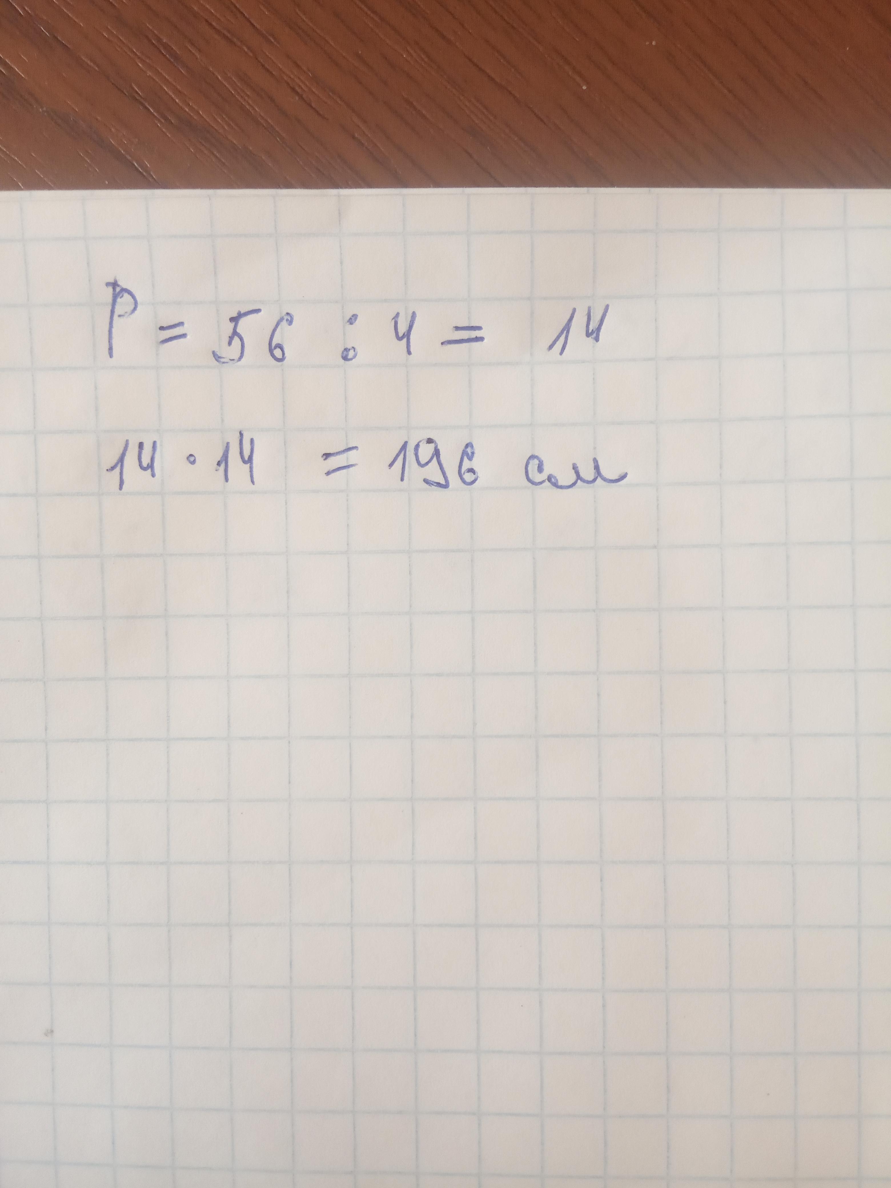 Квадрат = 4 однакові сторони = 56 см (периметр).
