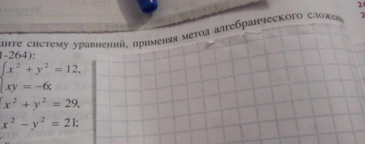 Первое уравнение методом сложения не решается.Методом подстановки могу решить