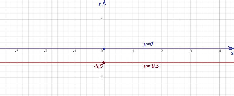 Так как графиком линейной функции является прямая, которая параллельна оси ОХ и проходящая через точку (0;-0,5) , то есть все точки этой прямой имеют различные абсциссы и одинаковые ординаты, равные -0,5 .