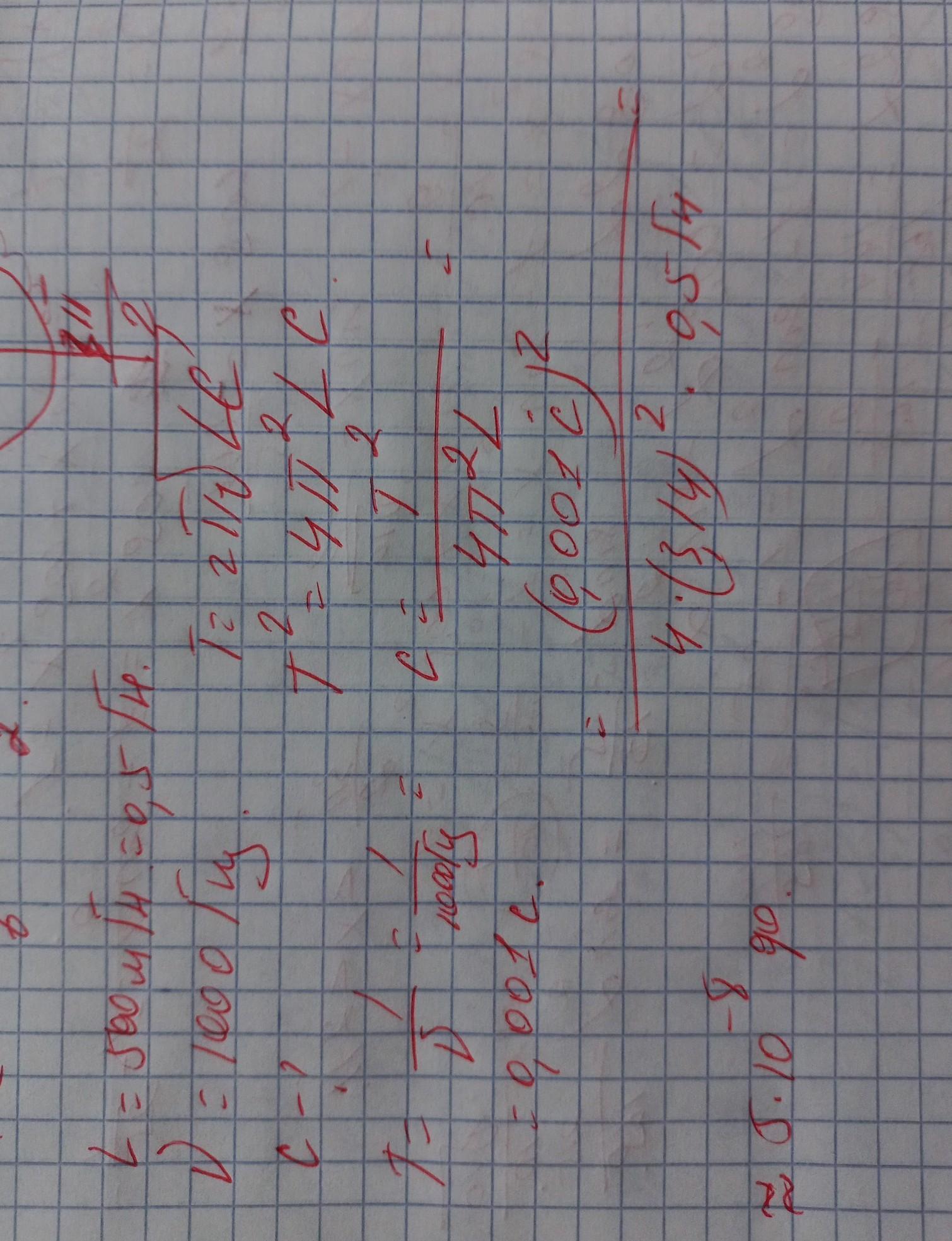Какую необходимо взять емкость в колебательном контуре чтобы при индуктивности 500 мГн можно было бы его настроить на частоту 1000 Гц?