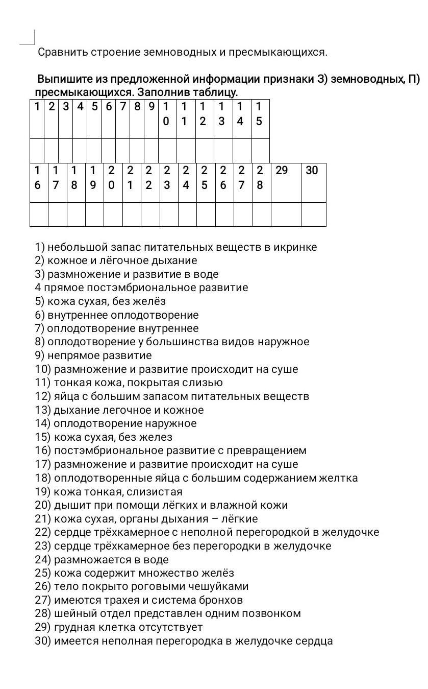 1. З ( у пресмыкающихся развитие зародыша происходит в яйцевой оболочке, где много питательных веществ)
