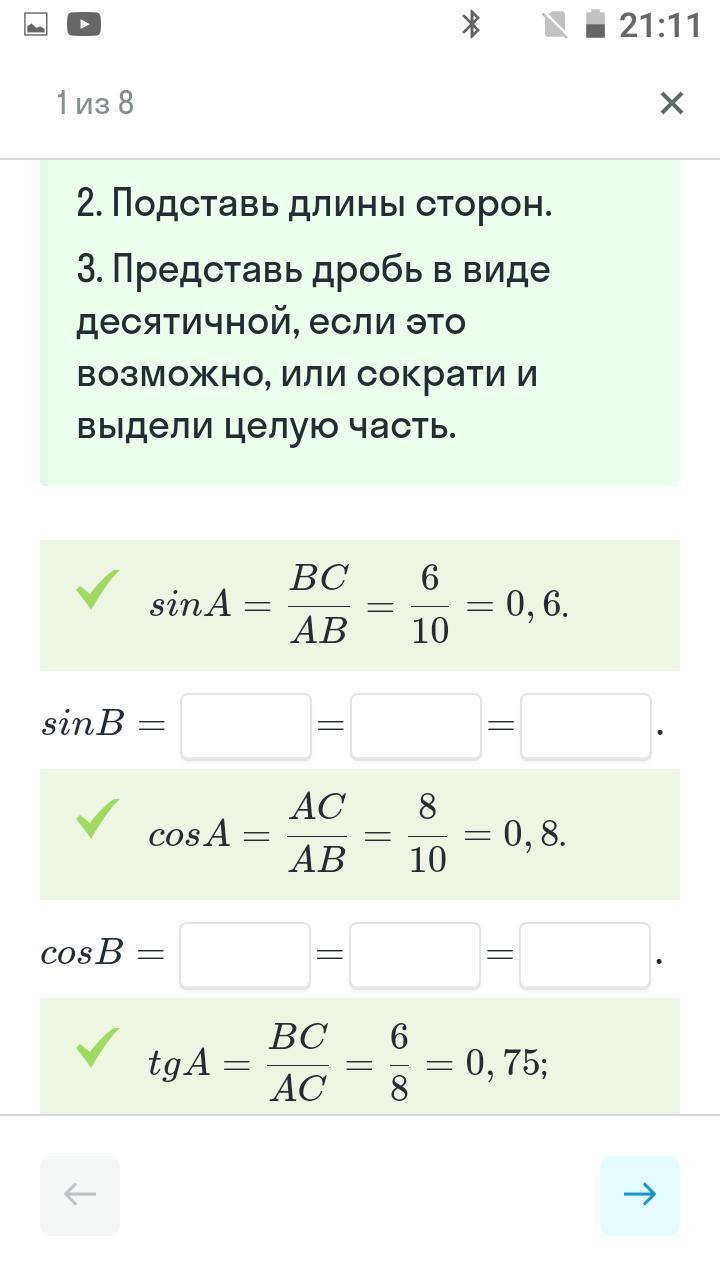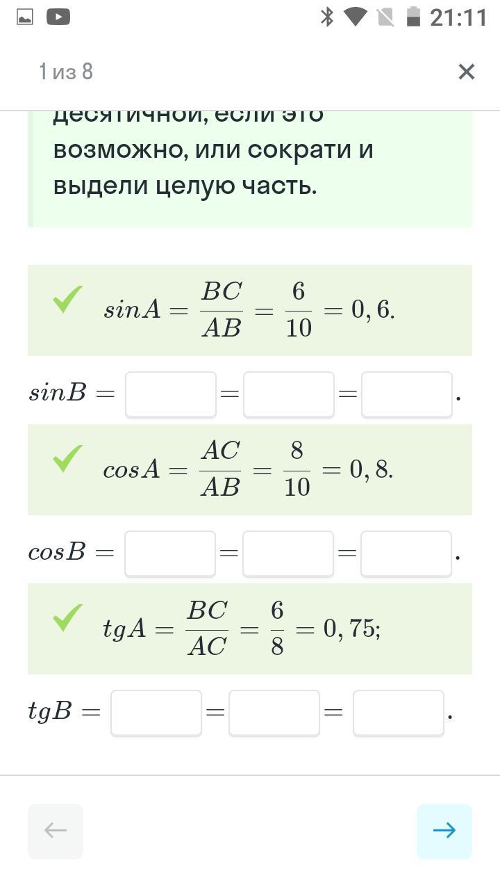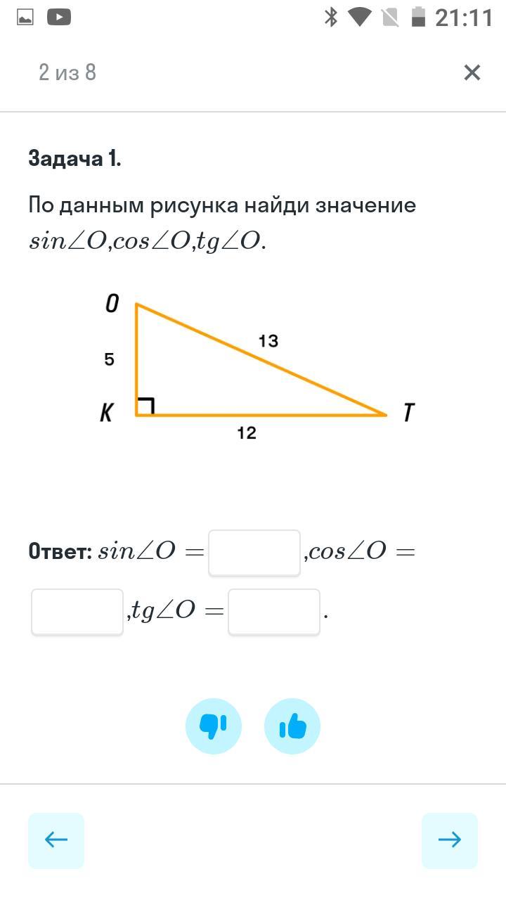 1 . sin∠O = 12/13 ; cos∠O = 5/13 ; tg∠O = 12/5 = 2,4 .