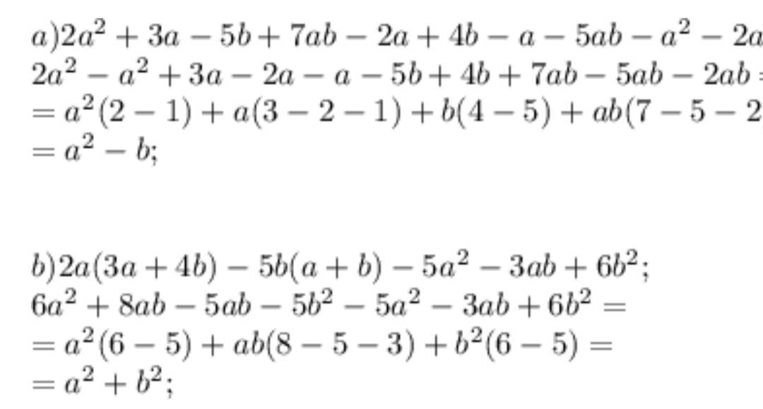 б) 6a^2+8ab-5ab-5b^2-5a^2-3ab+6b^2