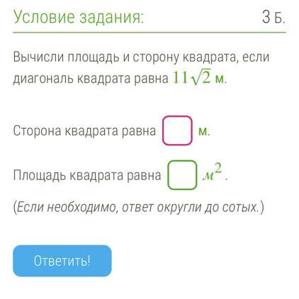 Сторона квадрата а=d/корень2=