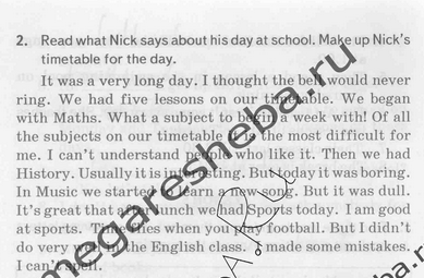 Это был очень долгий день. Я думал что звонок никогда не прозвенит. По нашему расписанию у нас было пять уроков. Мы начали с математики. Какой урок чтобы начать неделю! Из всех предметов в нашем расписании этот самый сложный для меня. Я не понимаю людей которым она нравится. Затем у нас была история. Обычно, она интересная. Но сегодня скучная. На уроке музыки мы начали учить новую песню. Но это было не весело.замечательно, что после обеда у нас сегодня будет физкультура. Я хорош в спорте. Время летит когда ты играешь в футбол.