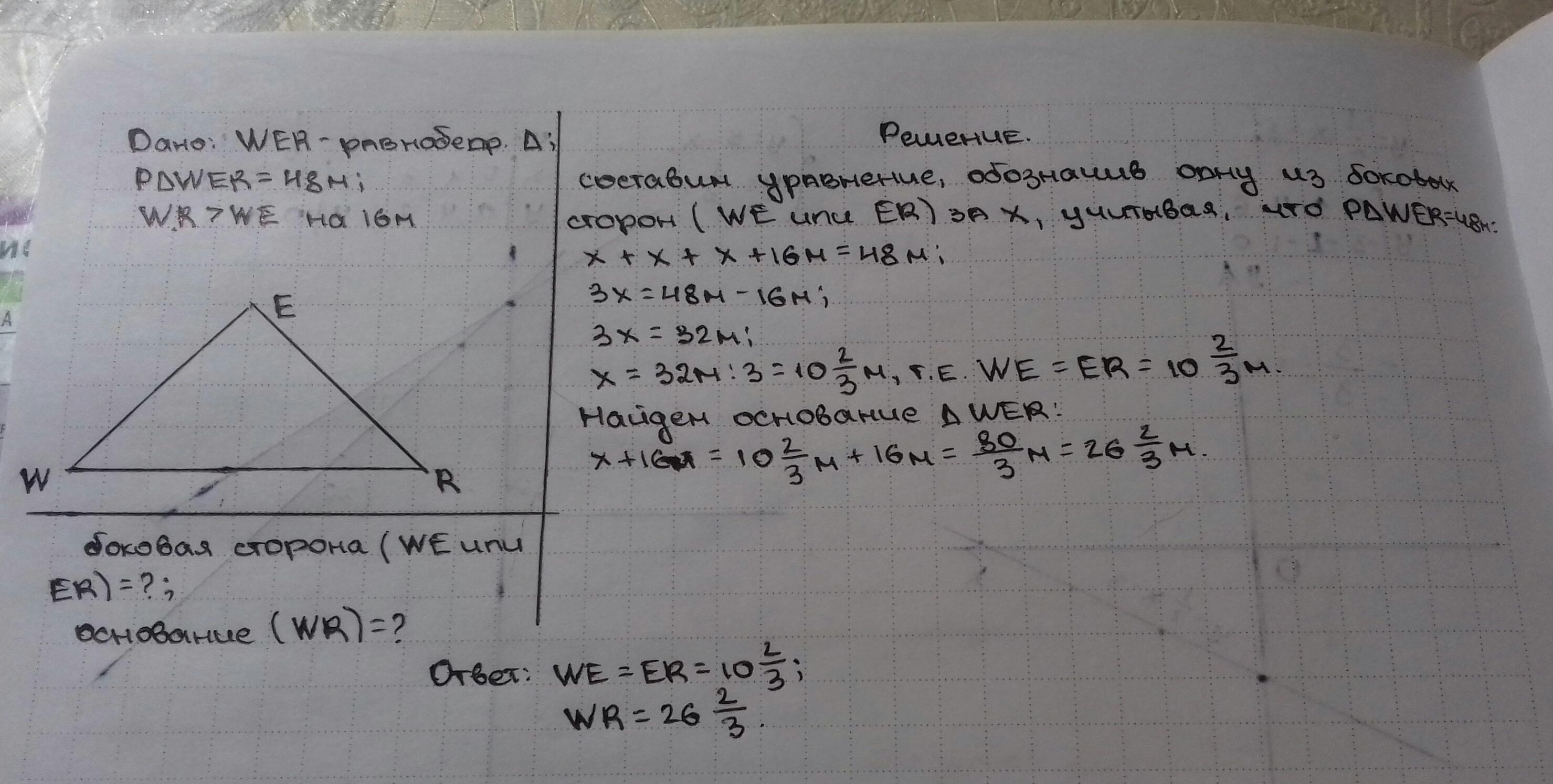 основание (WR) = м, боковая сторона ( WE или ER) =
