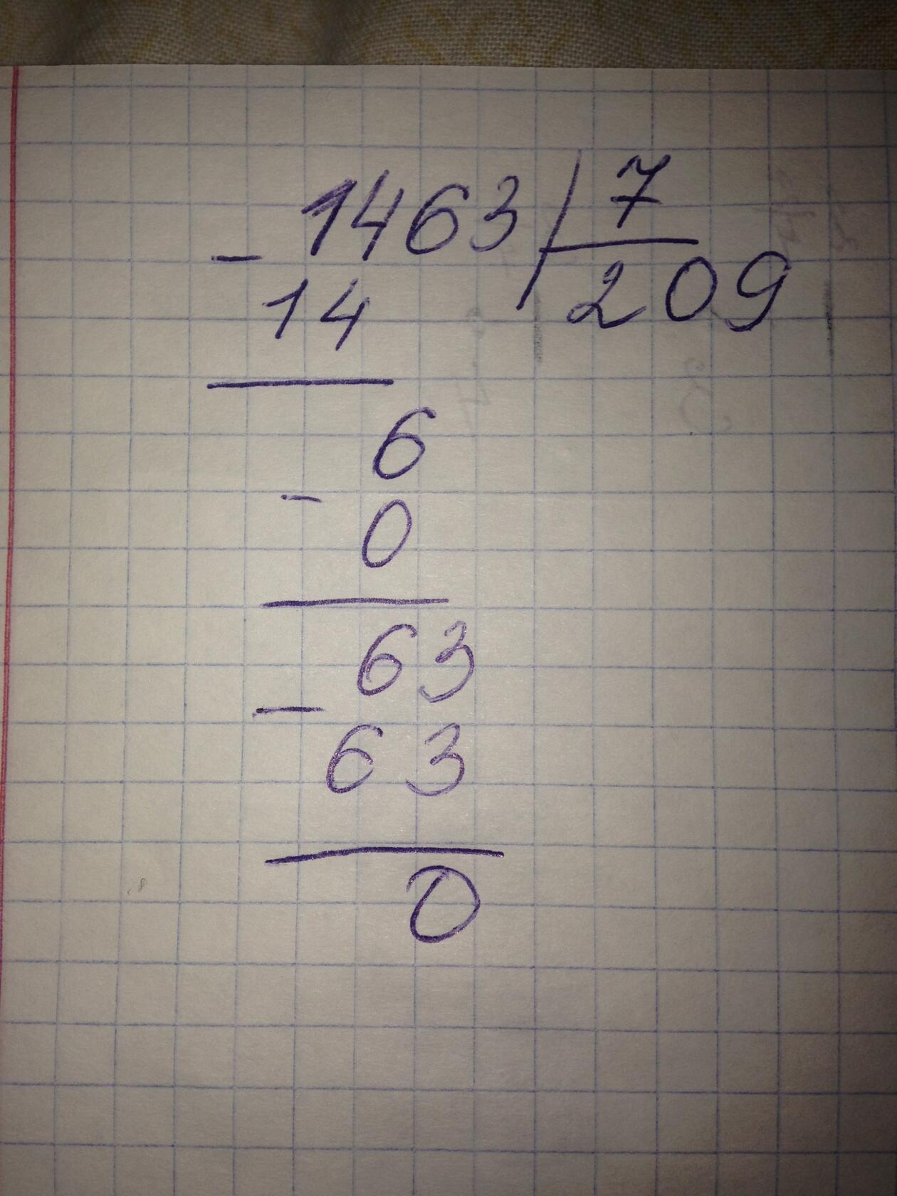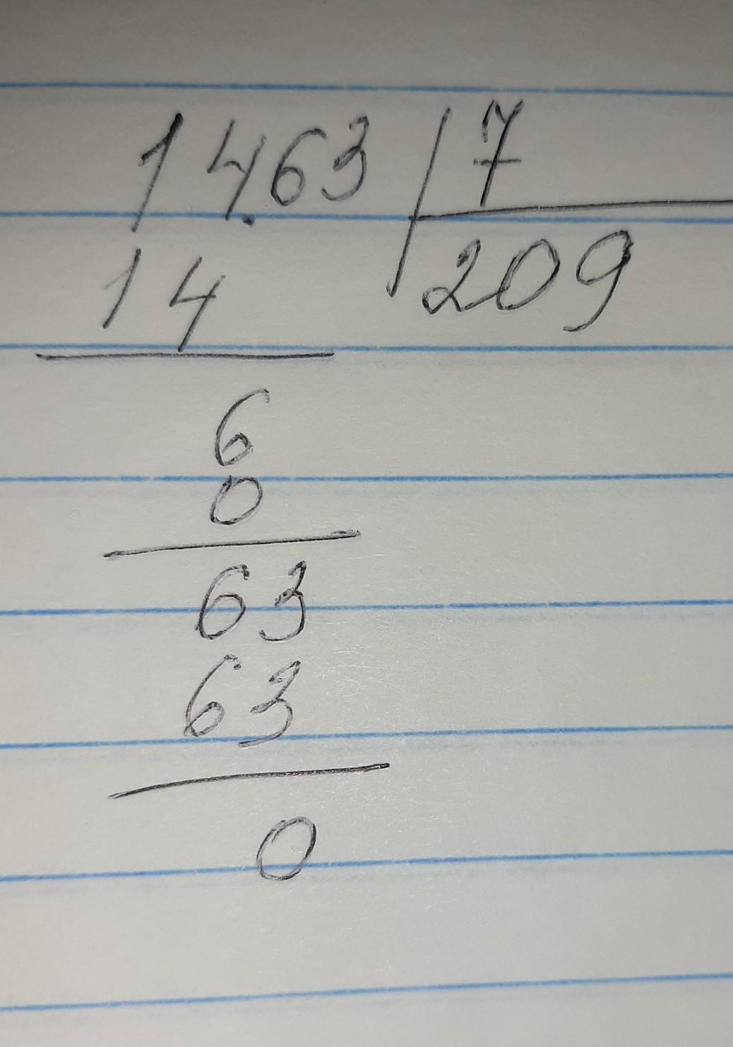 14 поделили на 7, затем сносите 6, так как 6 не делится на 7, добавляете 0 в частное, а потом уже к шестёрке добавляете 3, и 63 делите на 7