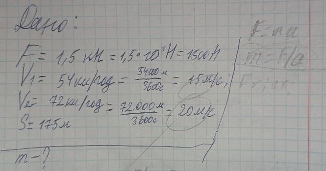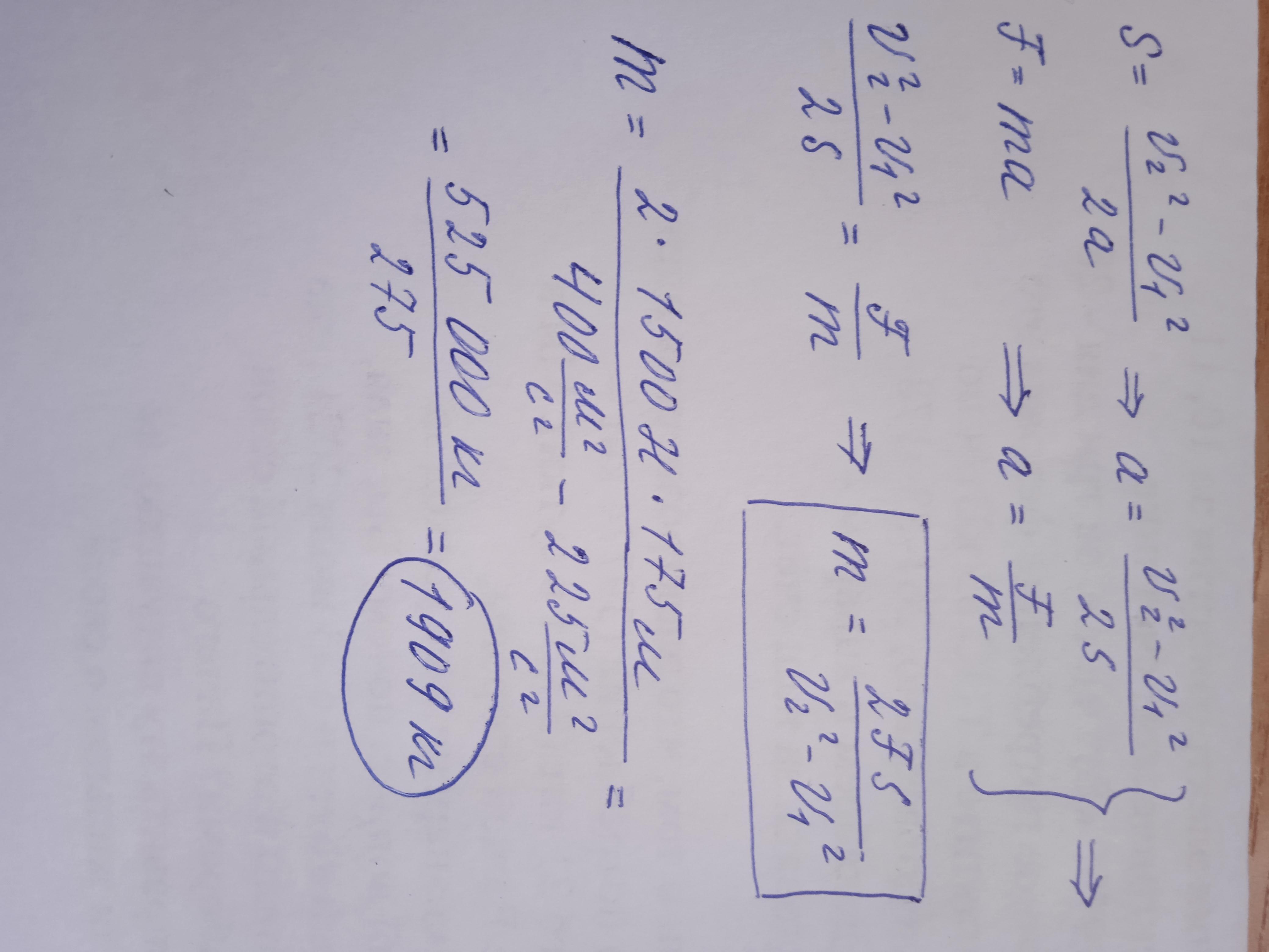 k226123t , я так понял там где последняя дробь, получается 275 вместо 175, и из за этого ответ уже 3000, и кстати это масса машины, спасибо за ответ)