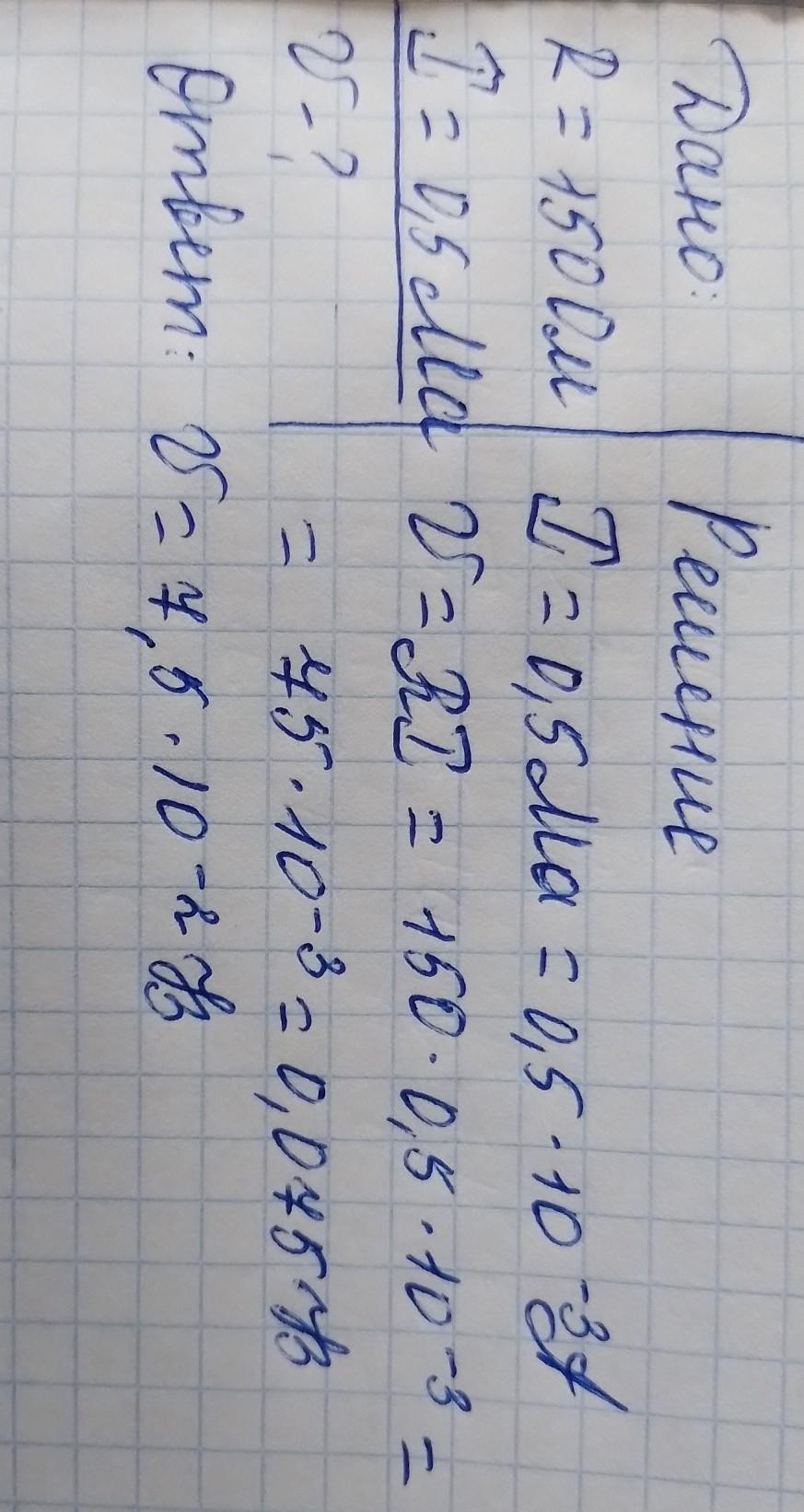 какое напряжение нужно приложить к проводнику сопротивлением 150 ом чтобы сила тока в проводнике была 0,5 ма