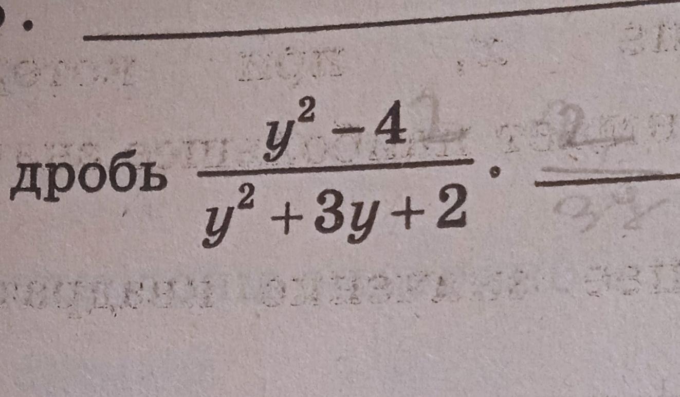 \frac{y^2-4}{y^2+3y+2} =\frac{y^2-4}{y^2+3y+2}  = \frac{(y-2)(y+2)}{y^2+2y+y+2}  =\\\\\\= \frac{(y-2)(y+2)}{y(y+2)+(y+2)} = \frac{(y-2)(y+2)}{(y+1)(y+2)}=\frac{y-2}{y+1}