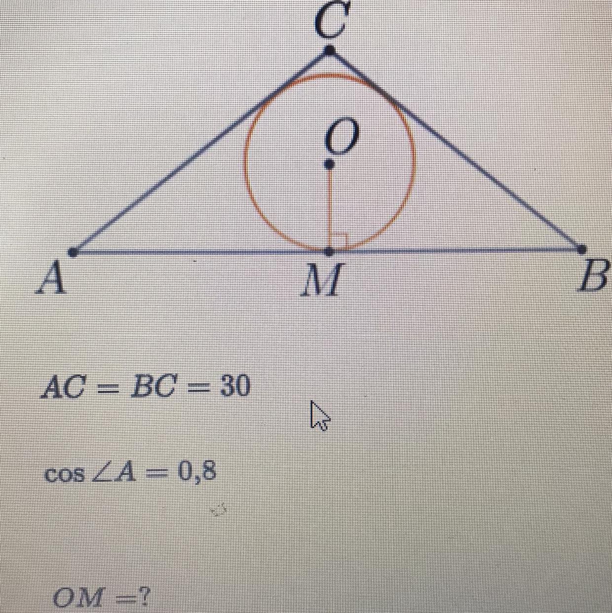S=pr; AM=AC*cosA=30*V3/2=15V3; CM^2=30^2-(15V3)^2=15^2