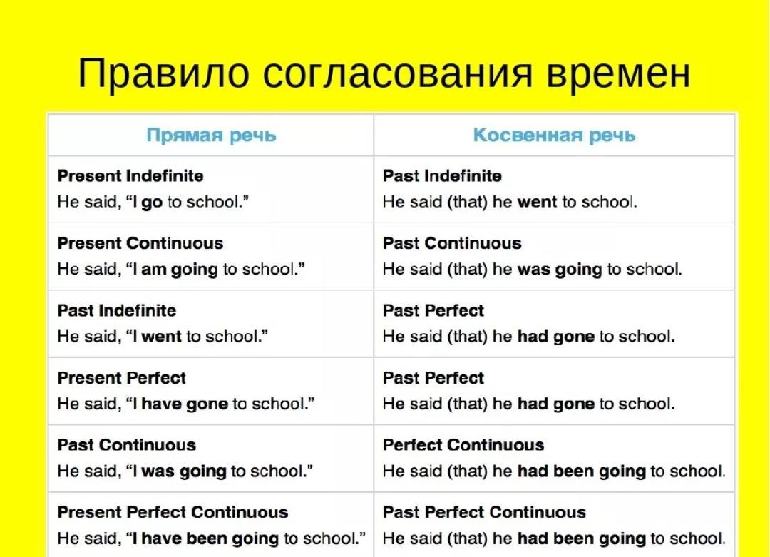 Все предложения в прямой речи в английском языке можно перевести в предложения в косвенной речи. Но если главное предложение будет в прошедшем времени, придаточное тоже должно поменять свое время на соответствующее. Здесь работает правило согласования времен.