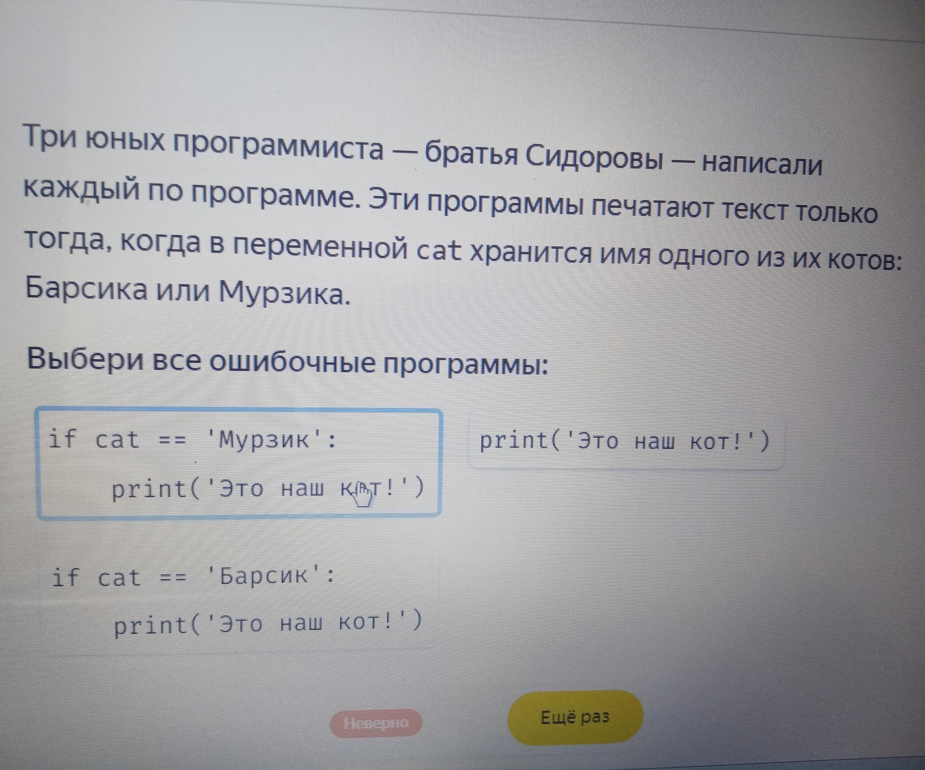 тк программа не проверяет, находится ли имя одного из котов в переменной cat