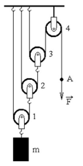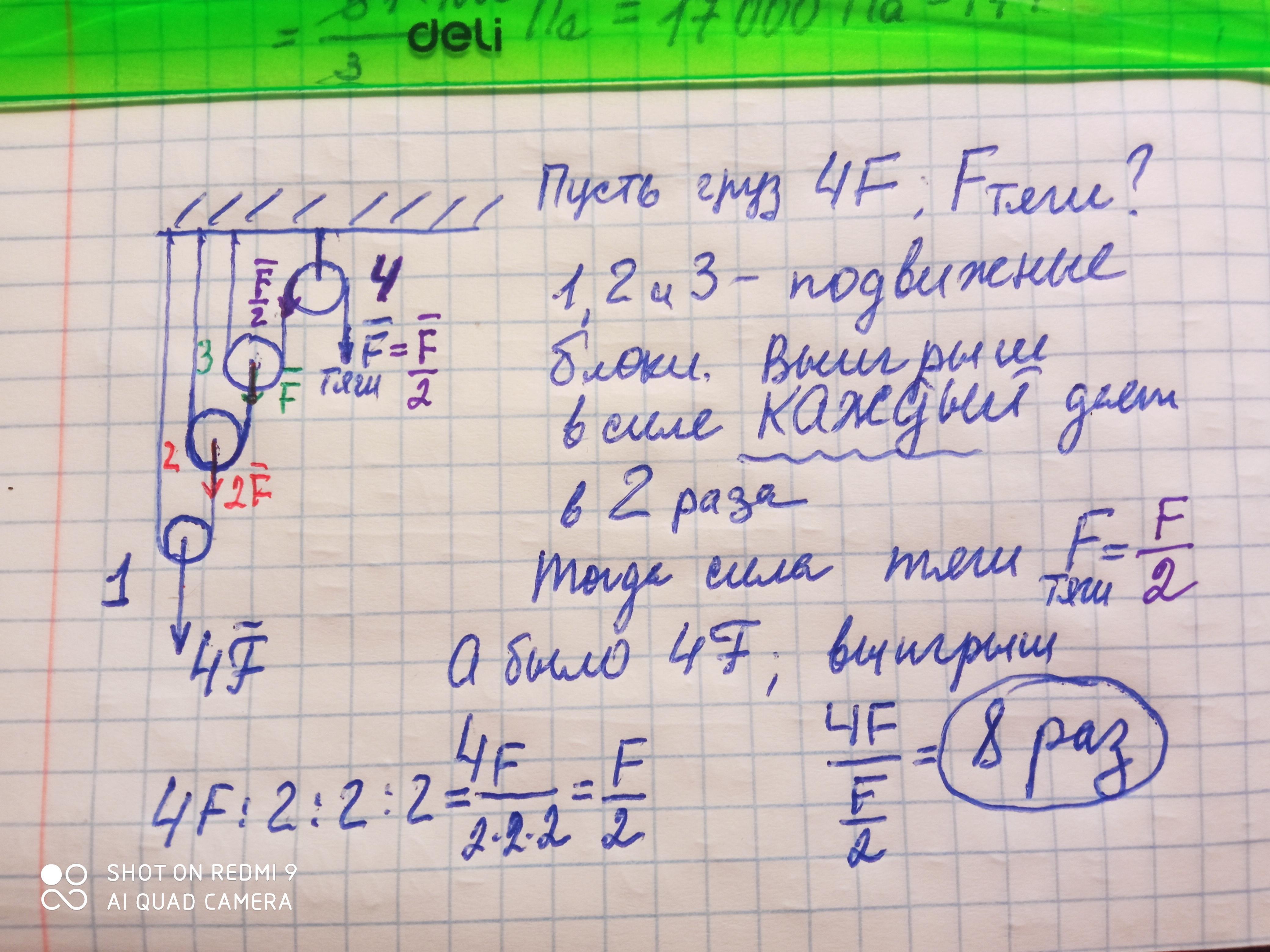 Какой выигрыш в силе дает система блоков изобраденная на рисунке? Ответ-целое число.