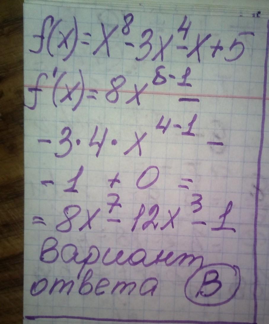 Знайдіть похідну функції f(х) = х⁸ - 3x⁴ - x + 5.