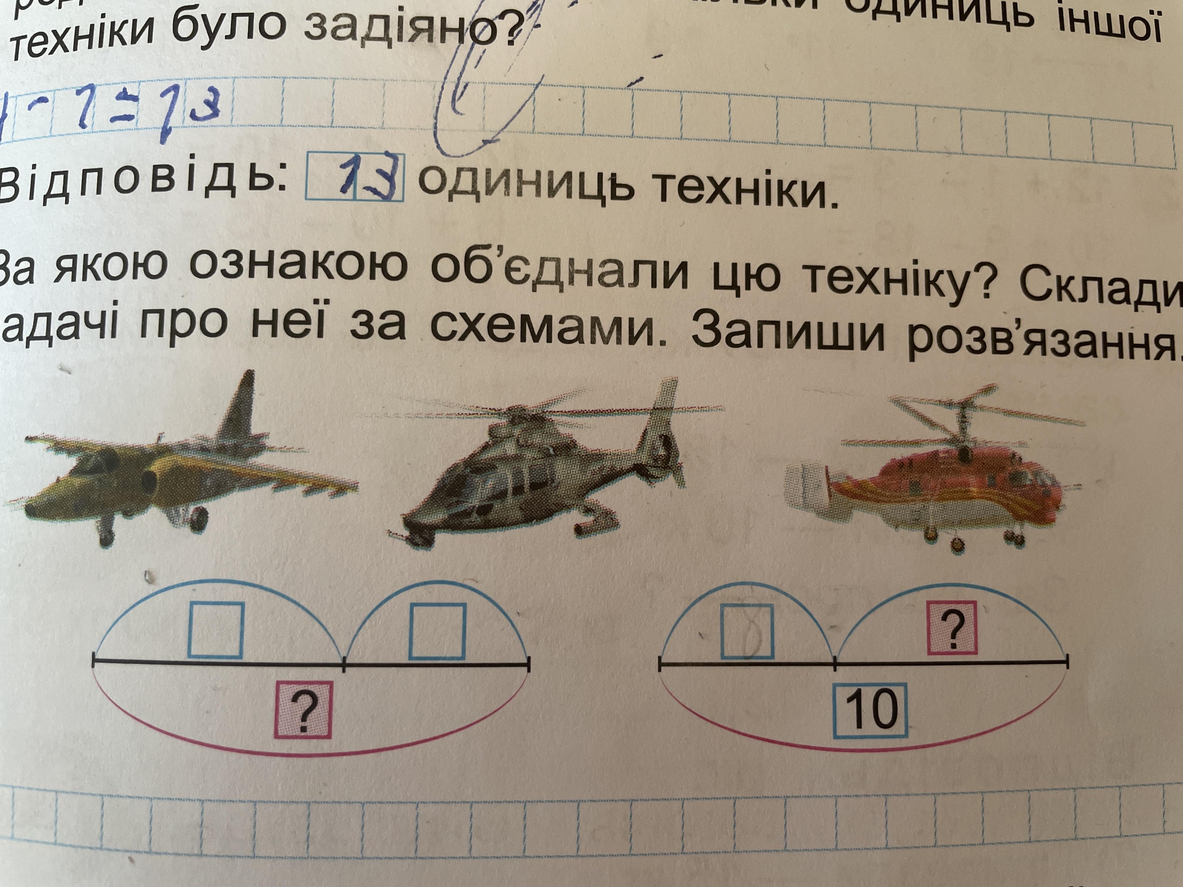 За якою ознакою об‘єднали цю техніку? Склади задачі про неї за схемами. Запиши розв‘язання