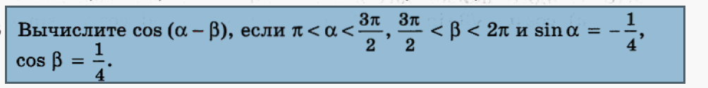 cos(a-b) = cosa*cosb + sina*sinb = cosa / 4 - sinb / 4 = (cosa - sinb) / 4