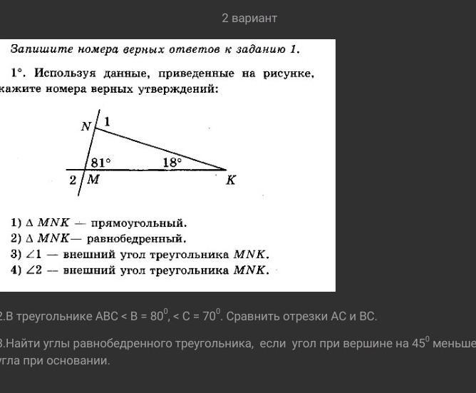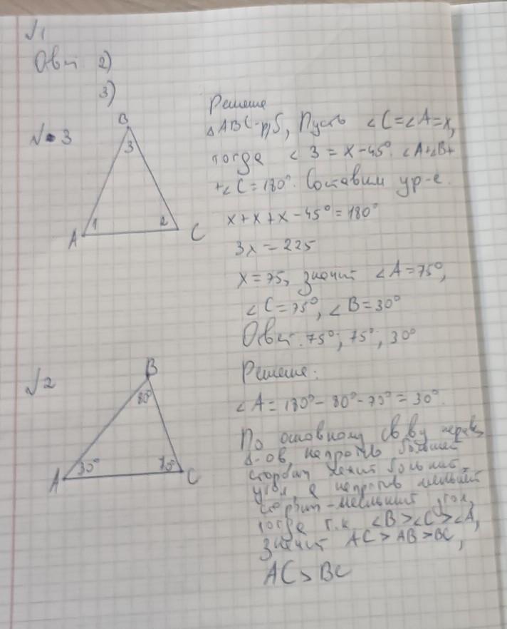 1) Т.к. сумма углов треугольника равна 180°, то