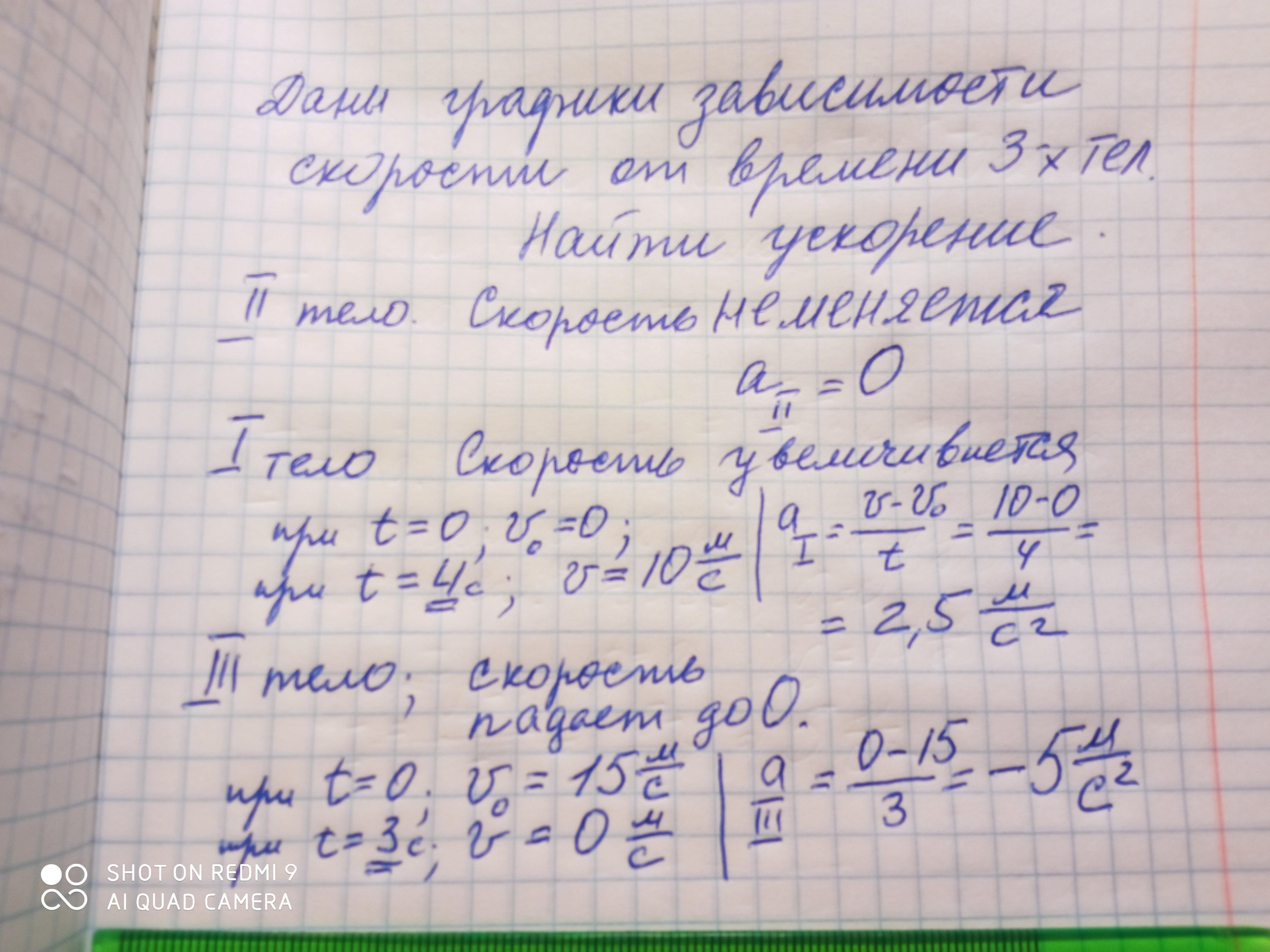 aₓ₃ = (V₃ -V₀₃ₓ) / (t₃ - t₀₃) = (0 - 15) / (3 - 0) = - 15 / 3 = - 5 м/с²