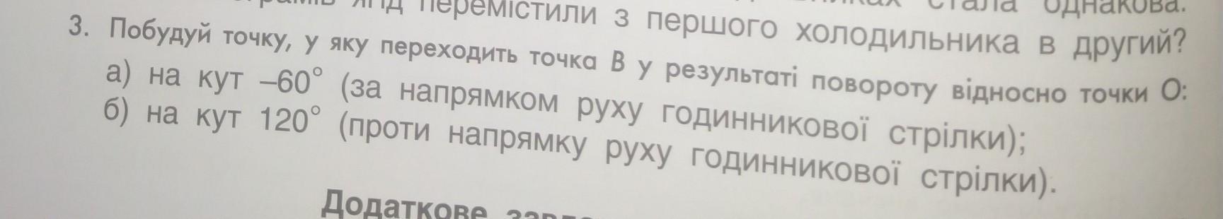 Построена точка, в которую переходит точка B при повороте на заданный угол.
