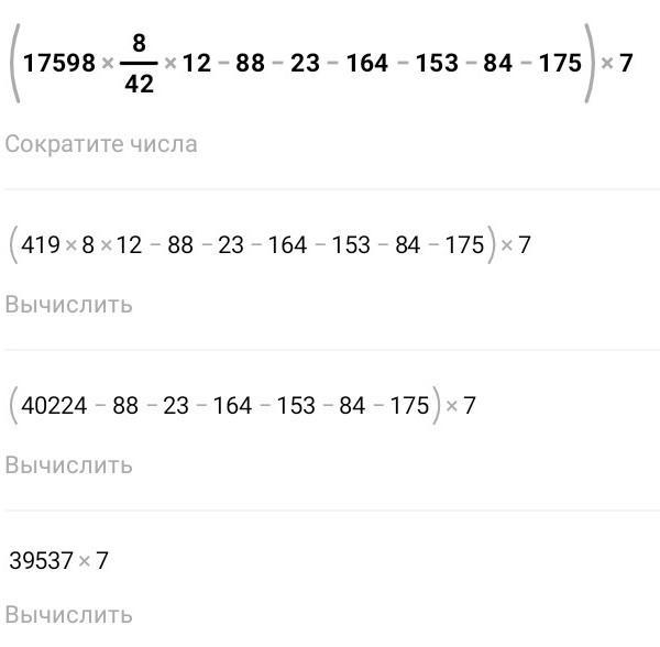 (17598 х 8 / 42 х 12 - 88 - 23 - 164 - 153 - 84 - 175 )×7