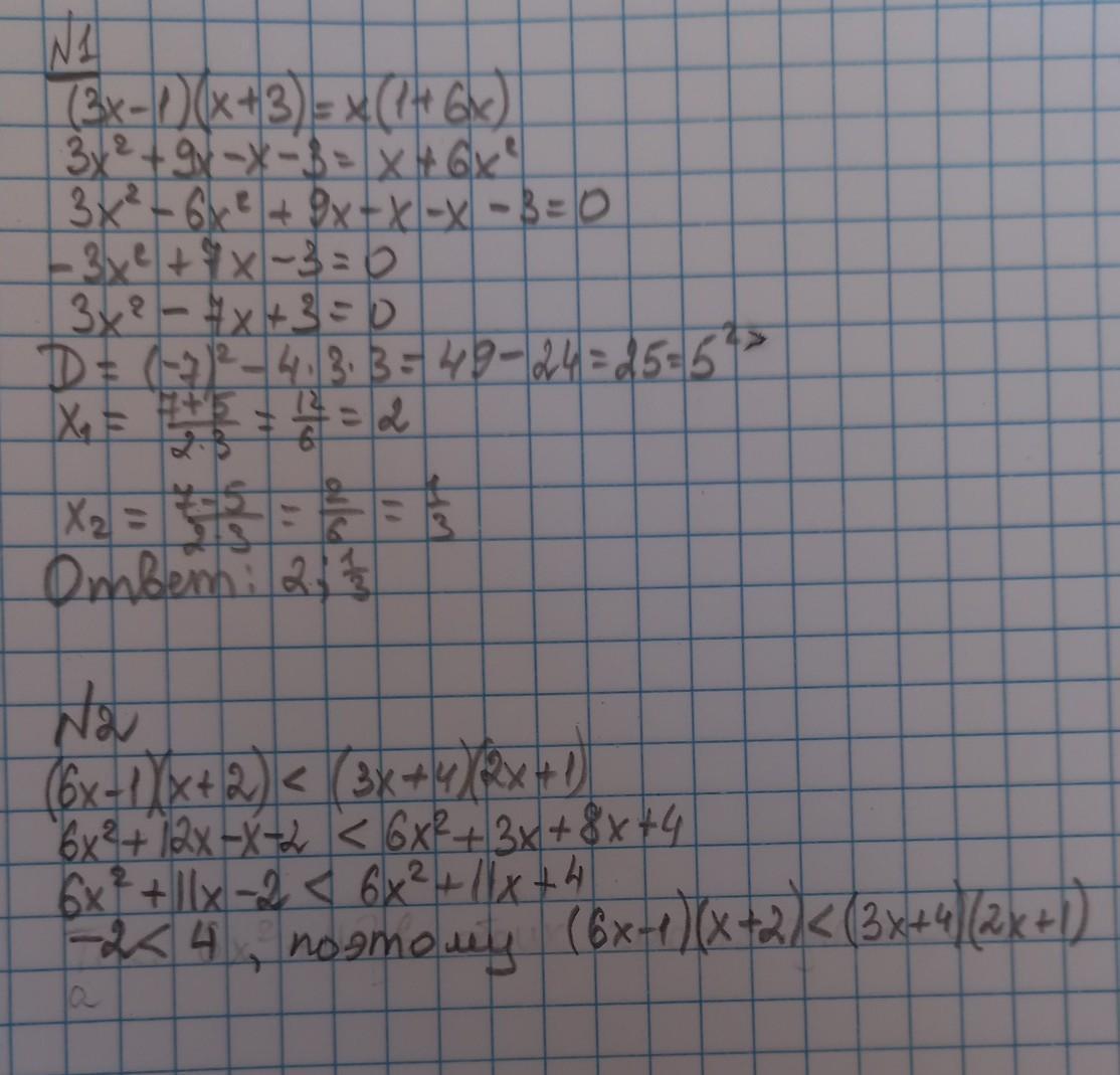 (3х - 1)(х + 3)=х(1 + 6х)