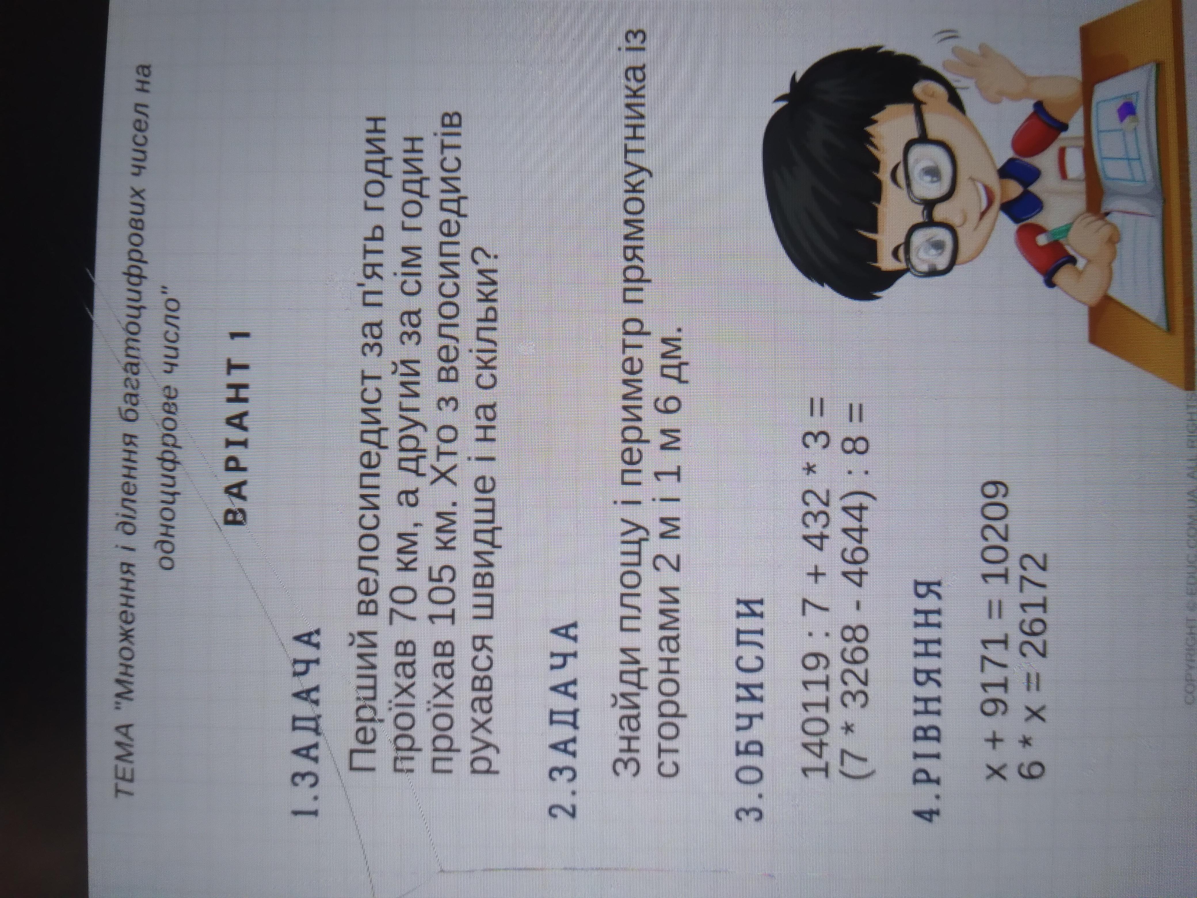 1. v1=14 v2= 15 Отже, швидкість другого велосипедиста більше на 1