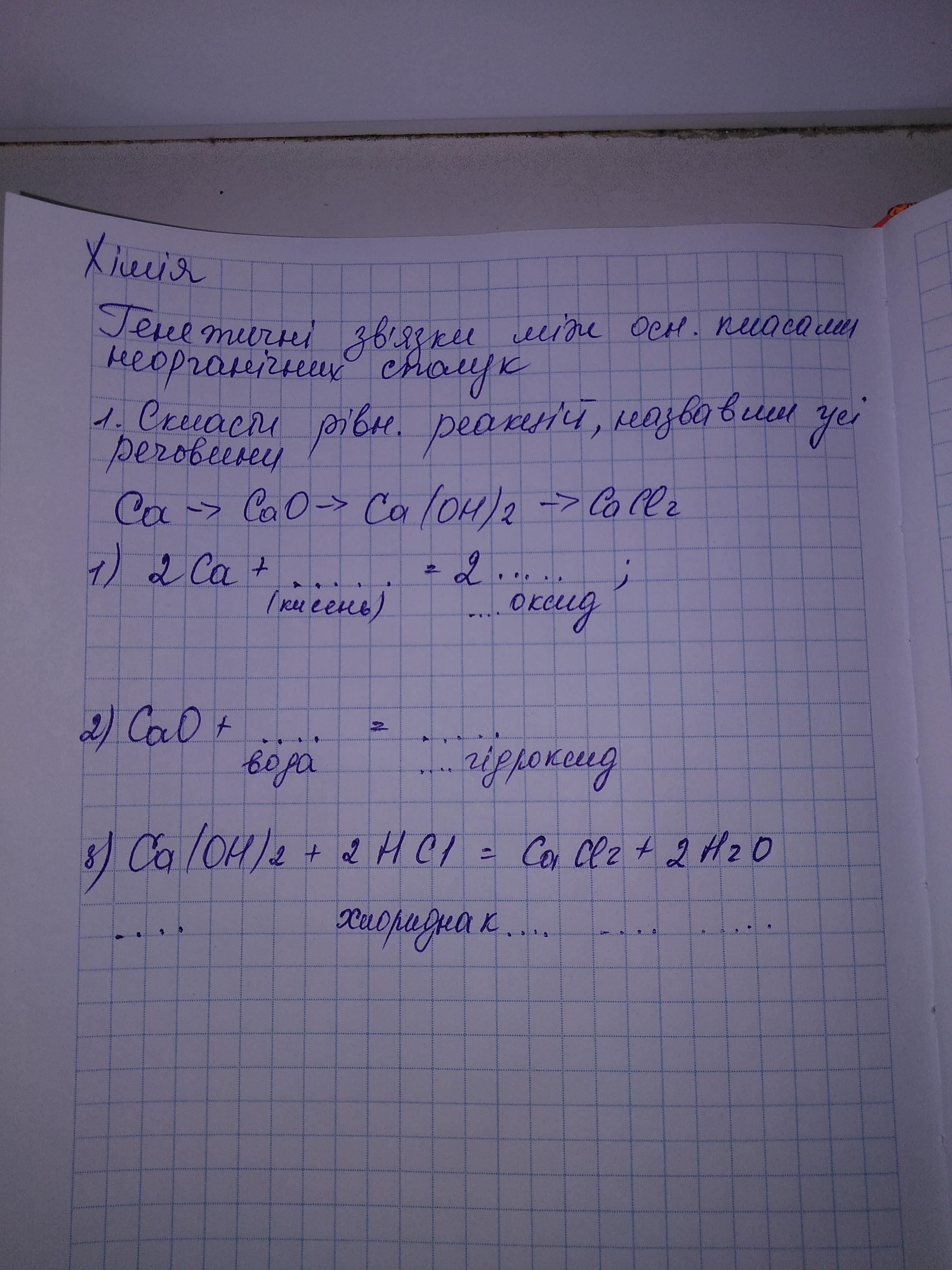 Кальцій Гідроксид + Хлоридна Кислота = Хлорид Кальцію + вода