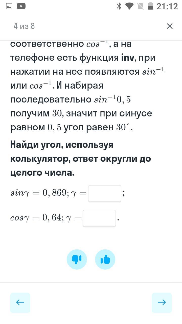 sinY=0,869 ;Y=60,34=60