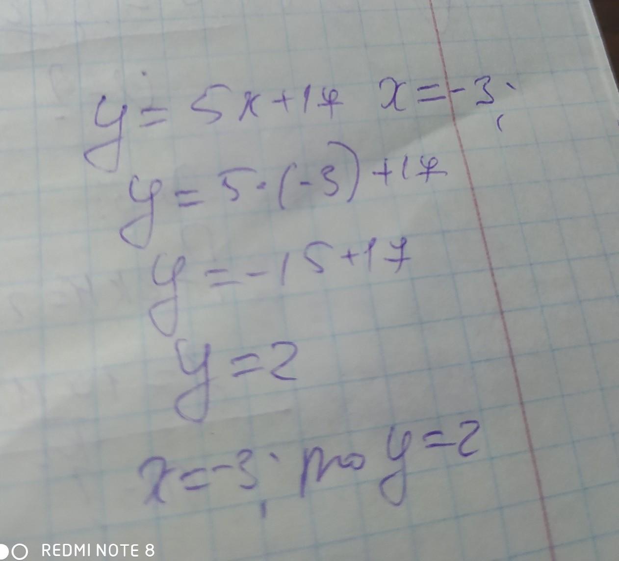 Подставим: у = 5 · (-3) + 17 = -15 + 17 = 2.