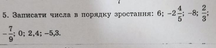 -8, -5,3, -2 4/5, -7/9, 0, 2/3, 2,4, 6.