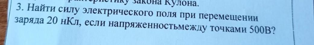 Найти силу электрического поля при перемещении заряда 20 нкл, если напряженностьмежду точками 500в?