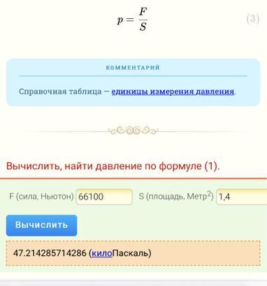 Рассчитайте дааление, которое оказывает на почву трактор весом 66100 Н, если площадь колёс равна 1,4м².