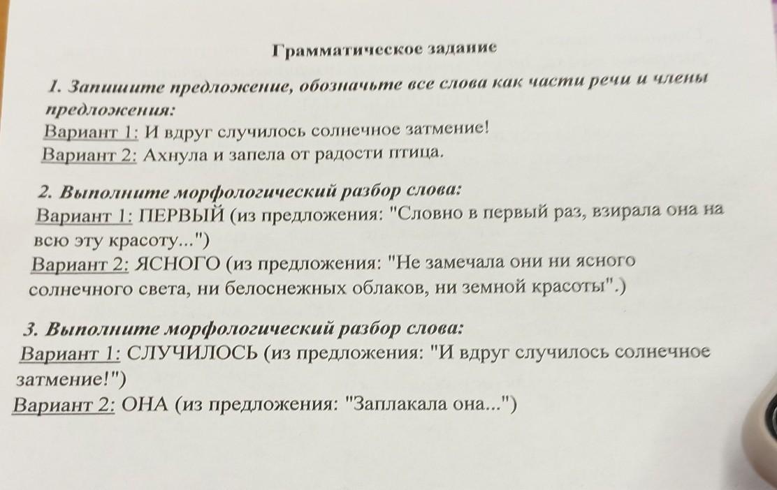 1.И(союз) вдруг(обст., НАР.) случилось(Сказ., глаг.) солнечное(опр., прилаг.)