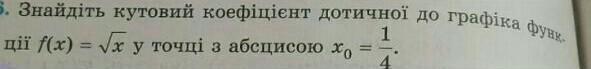f`(x)=1/(2Vx); f`(1/4)=1/(2*1/2)=1