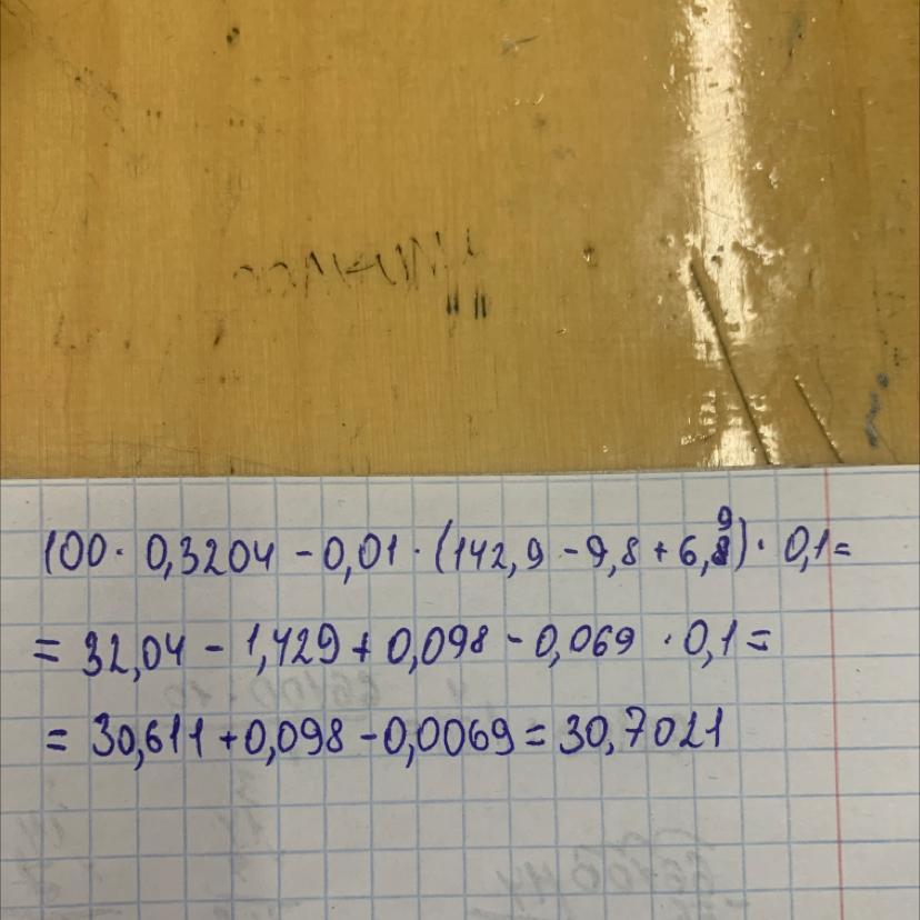 2) 100×0,3204-0,01×(142,9-9,8+6,9)×0,1=?