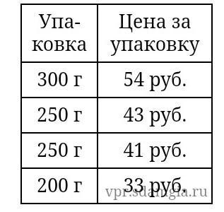 в магазине продается несколько видов куриного филе в различных упаковках и по различной цене. Какова наименьшая цена в расчёте на 1 кг куриного филе среди данных в таблице видов?