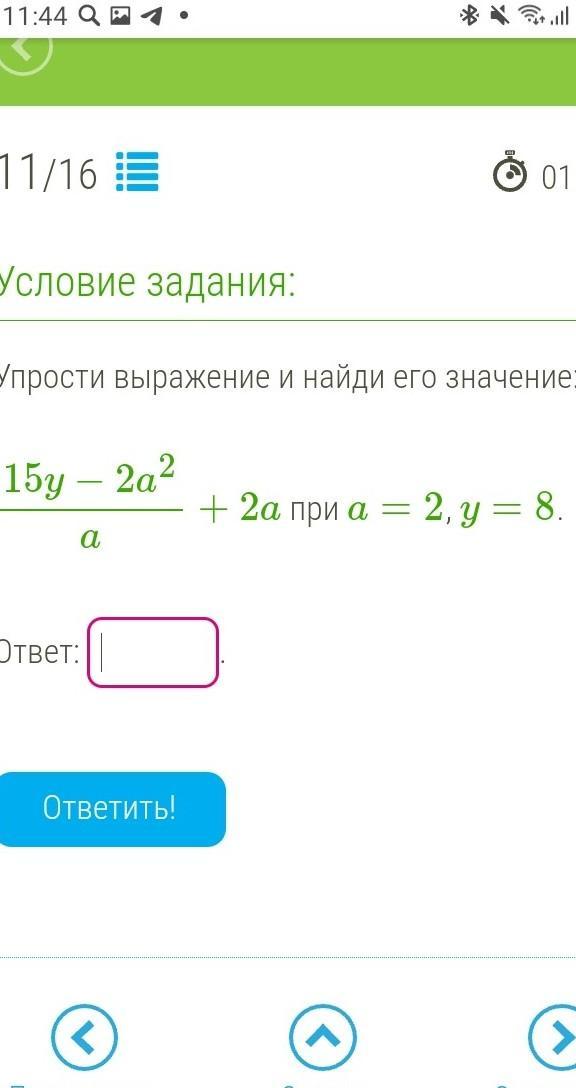 \frac{15y - 2 {a}^{2} }{a}  + 2a =  \frac{15y - 2 {a}^{2}  + 2 {a}^{2} }{a}  =  \frac{15y}{a}  =  \frac{15 \times 8}{2}  = 60