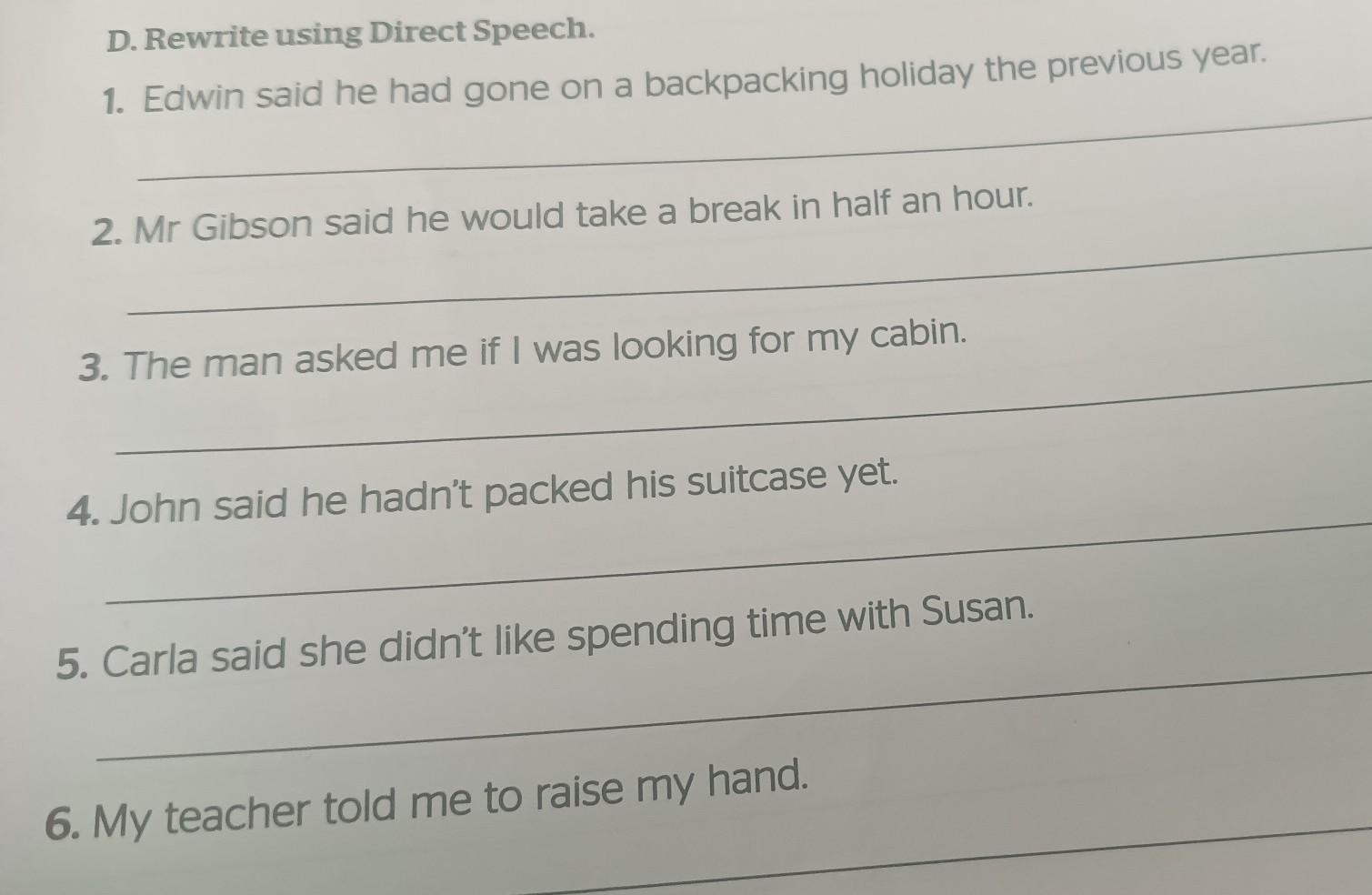1. Edwin said: "I went on a backpacking holiday the previous year."