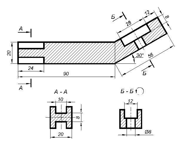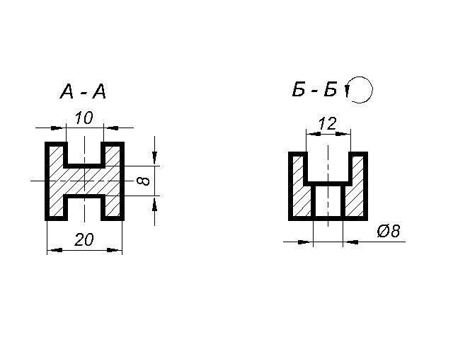 На третьем чертеже показала, что сечения можно расположить на свободном месте чертежа, только после обозначения сечения Б-Б нужно поставить значек о повороте.