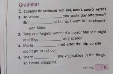 2. Tony and Angela watched a horror film last night and they were very scared.