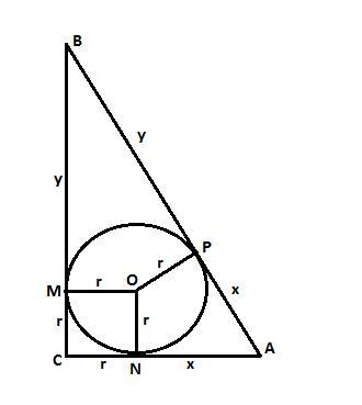 Радиусы OM и ON отрезают на катетах такие же отрезки x и y.