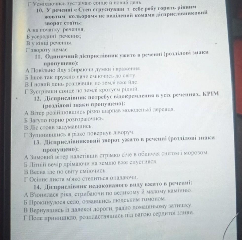 12. Дієприслівник потребує відокремлення в усіх реченнях, КРІМ (розділові знаки пропущено):