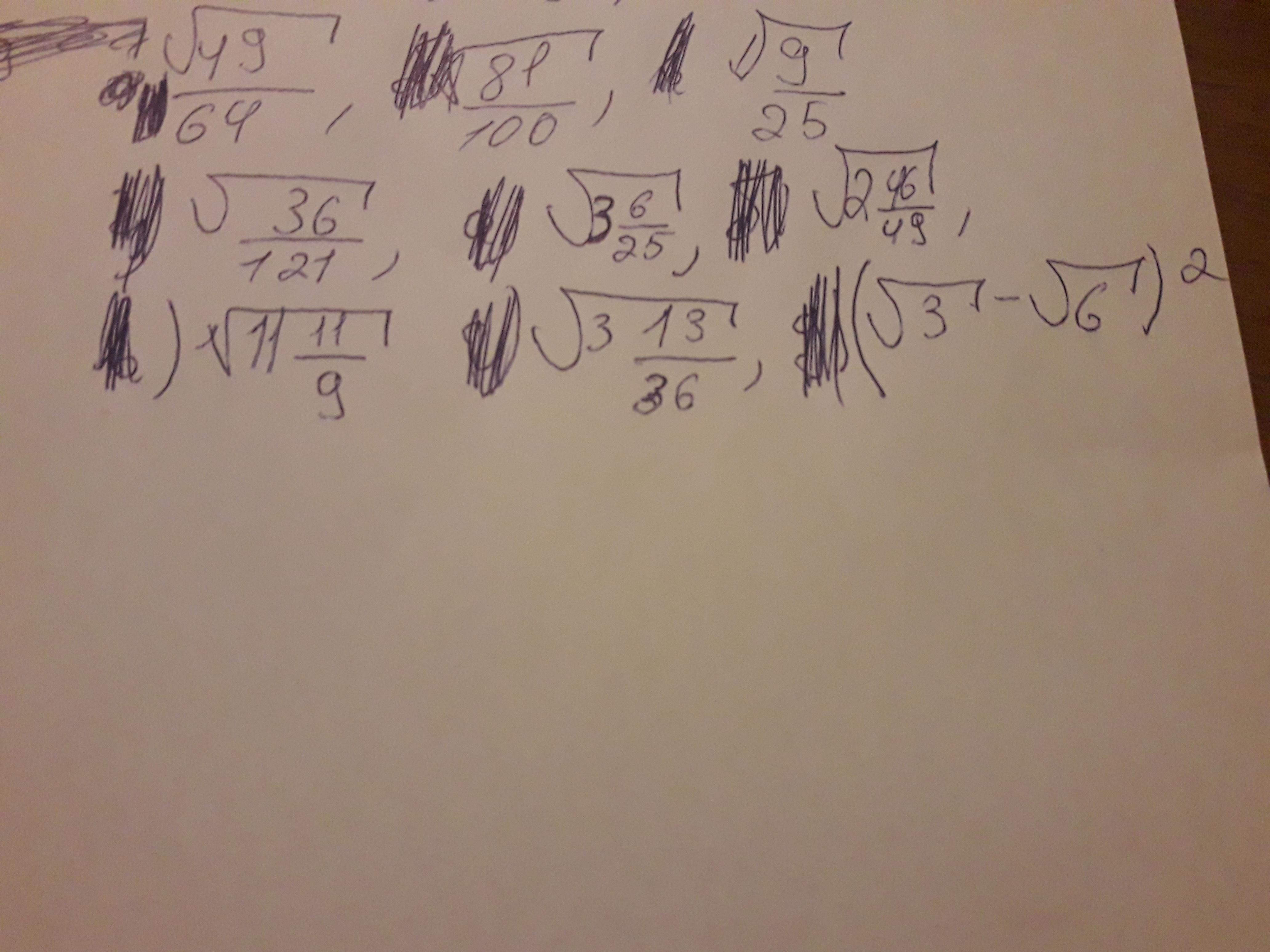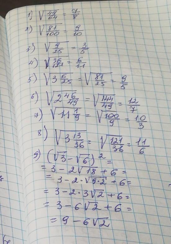 1) 7/8 2)9/10 3) 3/5 4) 6/11 5)9/5 6)12/7 7) корень из 110/3 8) 11/6 9) 7 корней из 18.