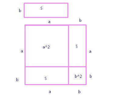(a + b)^2 = S + S + a^2 + b^2, или a^2 + 2ab + b^2 = 2S + a^2 + b^2.