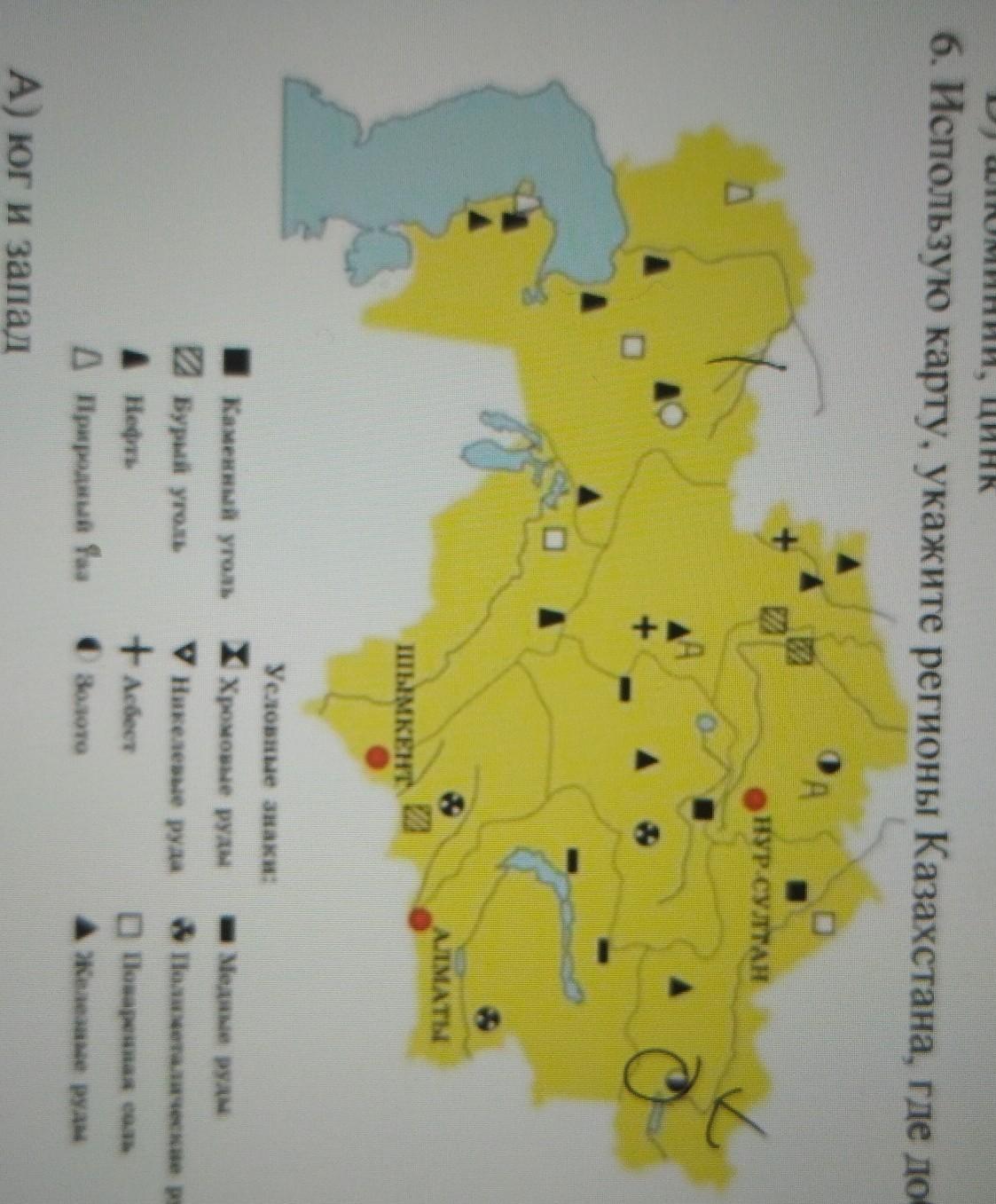Использую карту, укажите регионы Казахстана, где добывают золото